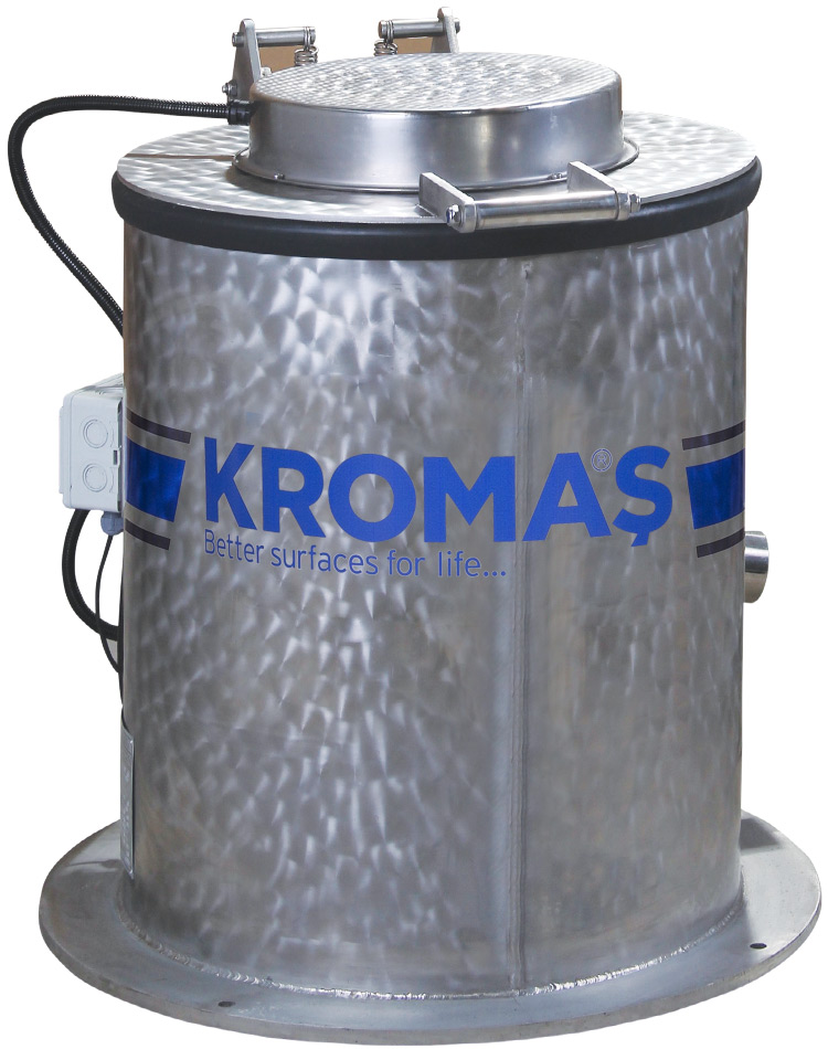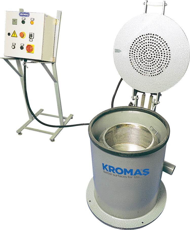 Kromaş SK 25 ve 50 litre kapasiteli santrifüj kurutma makineleri; küçük ve orta boy parçaların lekesiz kurutma ve yağ alma işlemlerinde kullanılmaktadır.